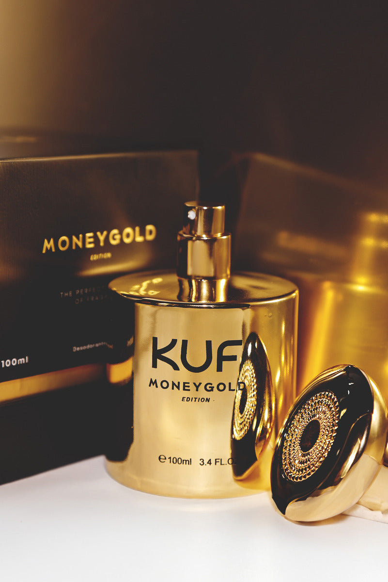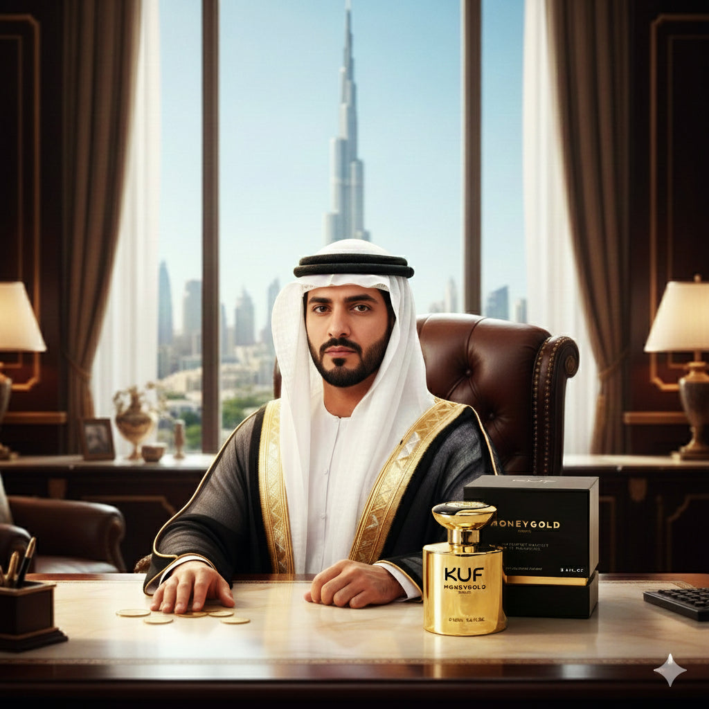 Perfume Masculino KUF MONEYGOLD 100ml Alta Fixação Um convite ao luxo, ao poder e à presença. KUF MONEYGOLD é uma inovação masculina sofisticada, criada para homens que não passam despercebidos. Combinando notas amadeiradas quentes, âmbar sensual e um toque fresco envolvente, é o equilíbrio ideal entre elegância e intensidade. *INSPIRAÇÃO ÁRABE* Atributo Informação Marca KUF Modelo: MONEYGOLD Gênero: Masculino Volume: 100 ml Família Olfativa: Amadeirado Oriental Toque fresco, especiarias leves. Notas de Topo: Cardamomo, Noz-Moscada, Açafrão, Mandarina, Néroli Notas de Coração: Kulfi, Rosa, Lentisco, Flor de laranjeira, Jasmin Notas de Fundo: Sândalo, Baunilha, Âmbar, Notas Amadeiradas Fixação: Alta (até 12 horas) Projeção: Média para Alta