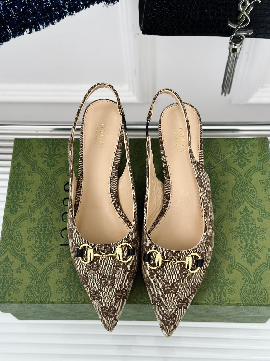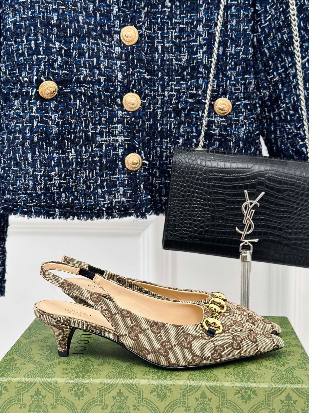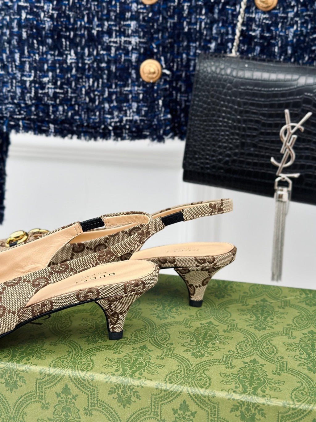 Desfrute de estilo exclusivo e elegante com a sandália de salto alto Gucci GG 105mm em couro preto. Com o icônico logotipo GG da Gucci e salto de 105mm, você se sentirá confiante e sofisticada em qualquer ocasião. Projetada com qualidade premium e detalhes luxuosos, esta sandália é a escolha perfeita para adicionar um toque de glamour ao seu look.